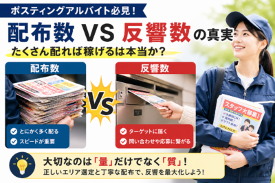今回は、ポスティング業界のリアルとして「配布数VS反響数」というテーマで、効率よく稼ぎ、信頼される配布員になるための考え方を解説します。